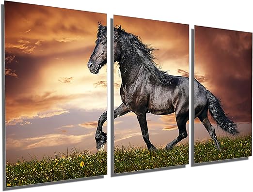 Black Stallion Horse Wall Art Metal Print 3 Panel Split