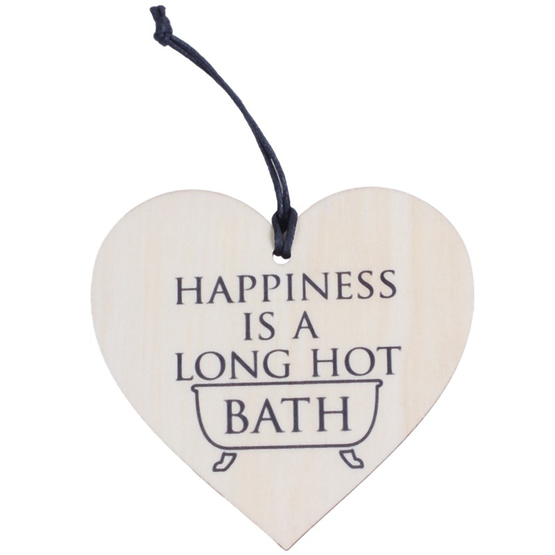 Happiness Is A Long Hot Bath Wooden Hanging Heart Shaped Bathroom