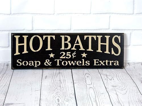 Amazon Com Hot Baths Country Sign 4 Inches X 12 Inches Black