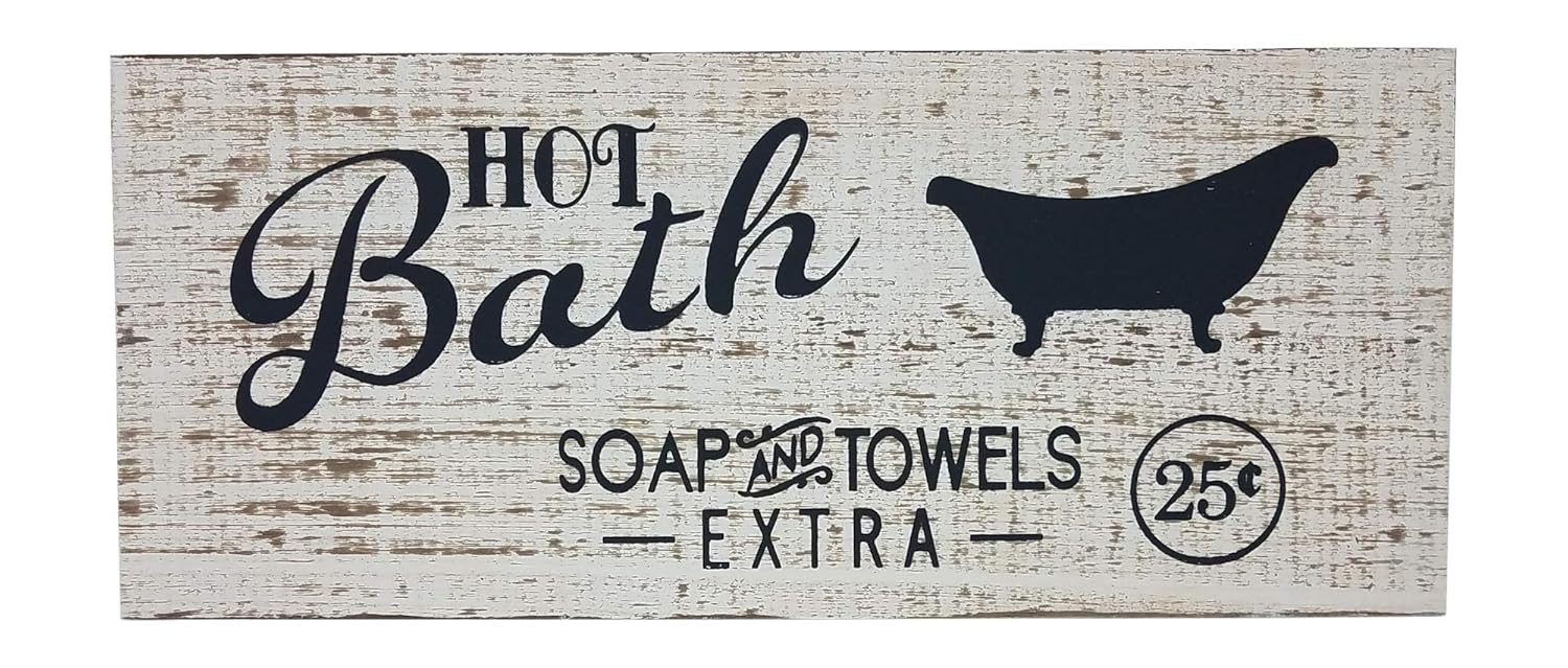Hot Bath Soap And Towels Extra Wood Sign Typography Description