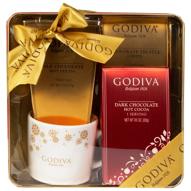 Godiva Hot Beverage Tin Gift Set Includes Mug 1 Flavor Packet Of Hot Cocoa And 1 Flavor Packet Of Truffle Coffee