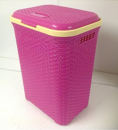 Rattan Sturdy Plastic Laundry Bin Washing Bin Basket Hot Pink 50