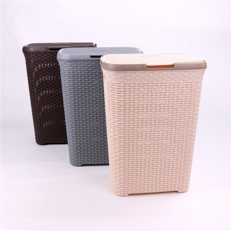 Hot Penjualan Rotan Laundry Basket Plastik Dengan Tutup Plastik