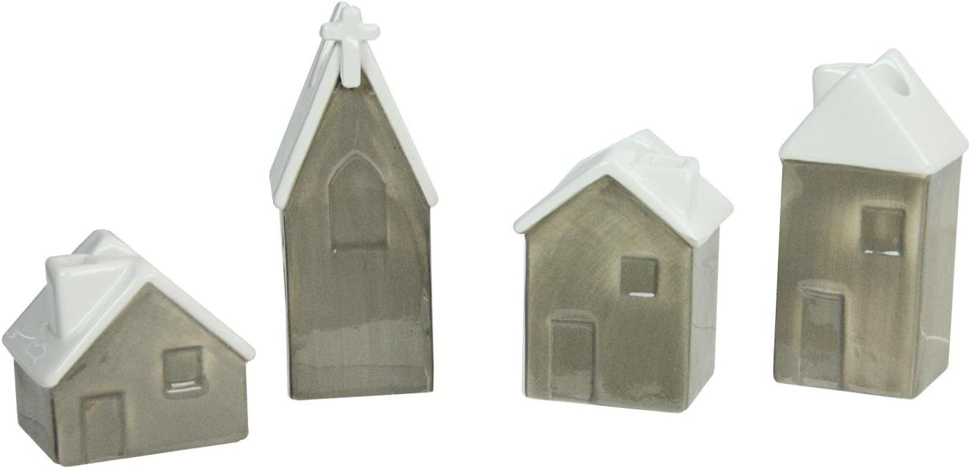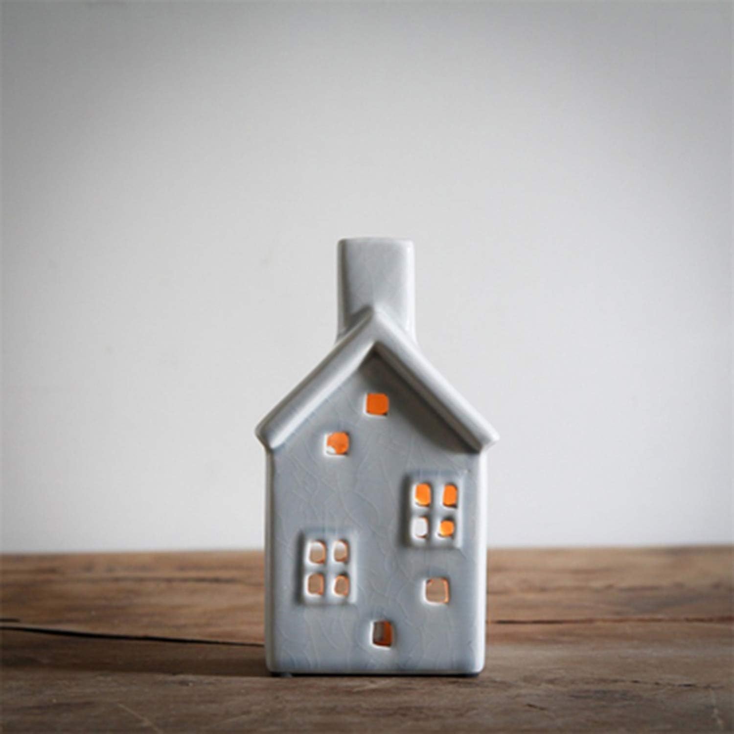 Ceramic Grey Village Cottage House Home Pottery Ornament Tea Light