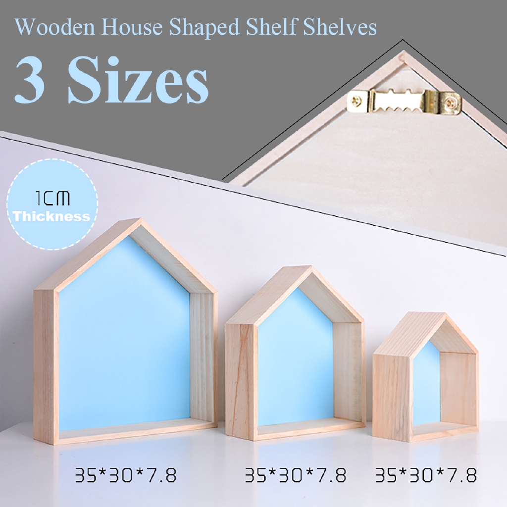 1pcs House Shape Decoration Shelving Wall Shelf Display Hanging Wall Mounted Wooden Mini House Shaped Kids Room