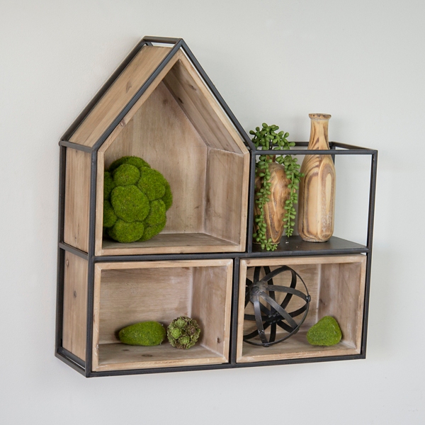 Amazon Com Lioobo 2 Pcs Wooden House Shaped Wall Storage Shelf Wood Wall Shelf Display Hanging Shelving Shadow Box