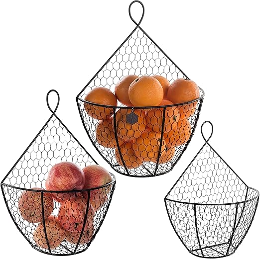 Premium 3 Tier Wall Mounted Hanging Wire Baskets Storage With
