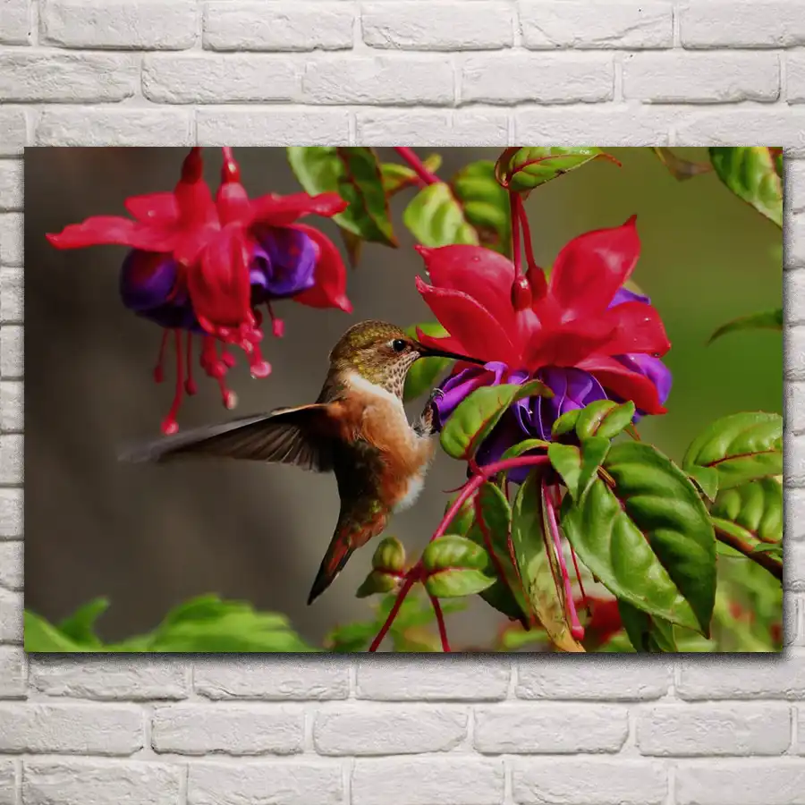 Nature Hummingbird Bird Fuchsia Flowers Green Leaves Living Room