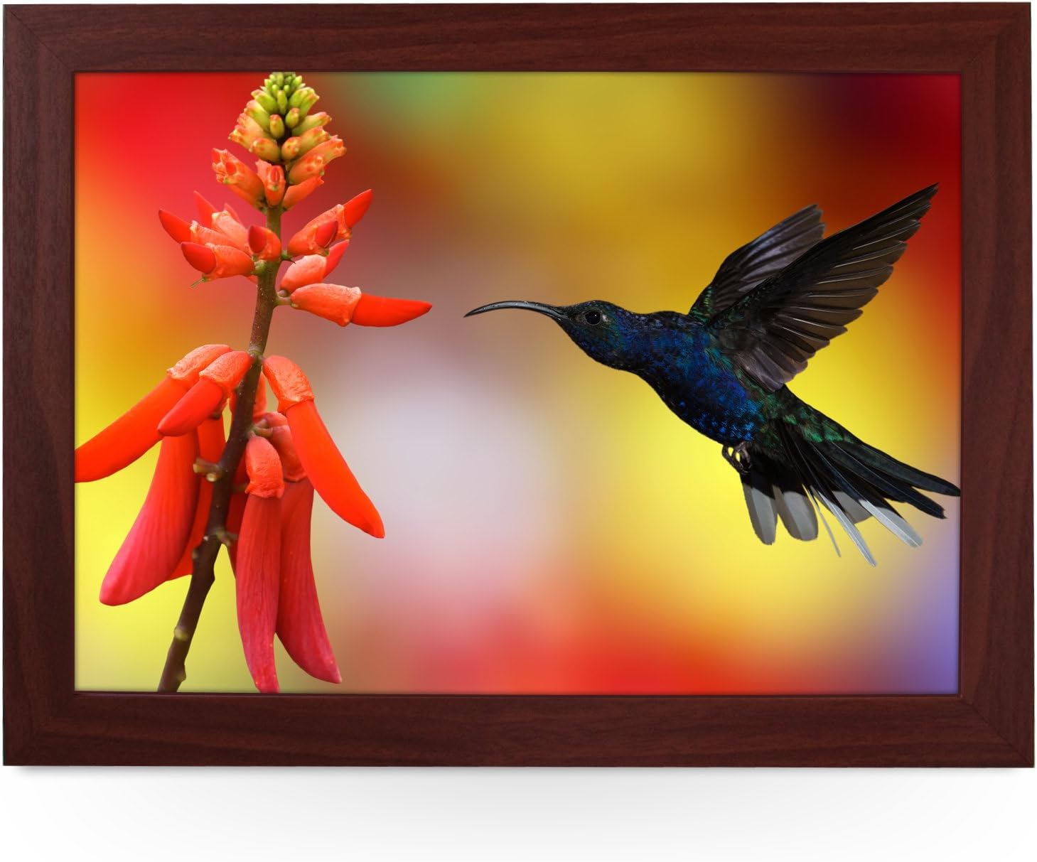 Portable Lap Desk Tray Hummingbird With Flower Handmade Wooden