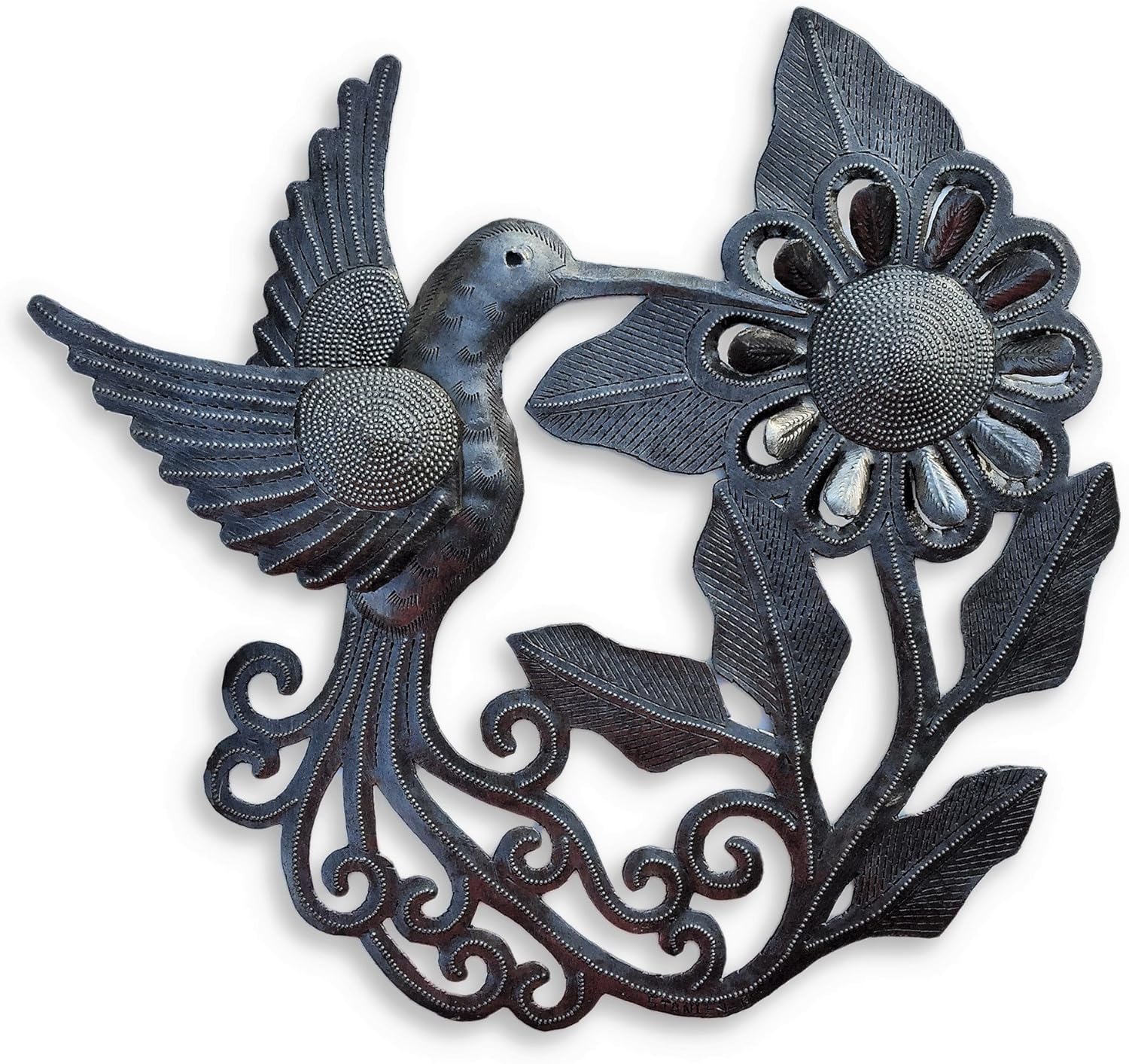 Amazon Com Large Hummingbird Flower Metal Wall Art 0 Home Kitchen