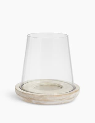 Hurricane Candle Holder With Wooden Base Home George At Asda
