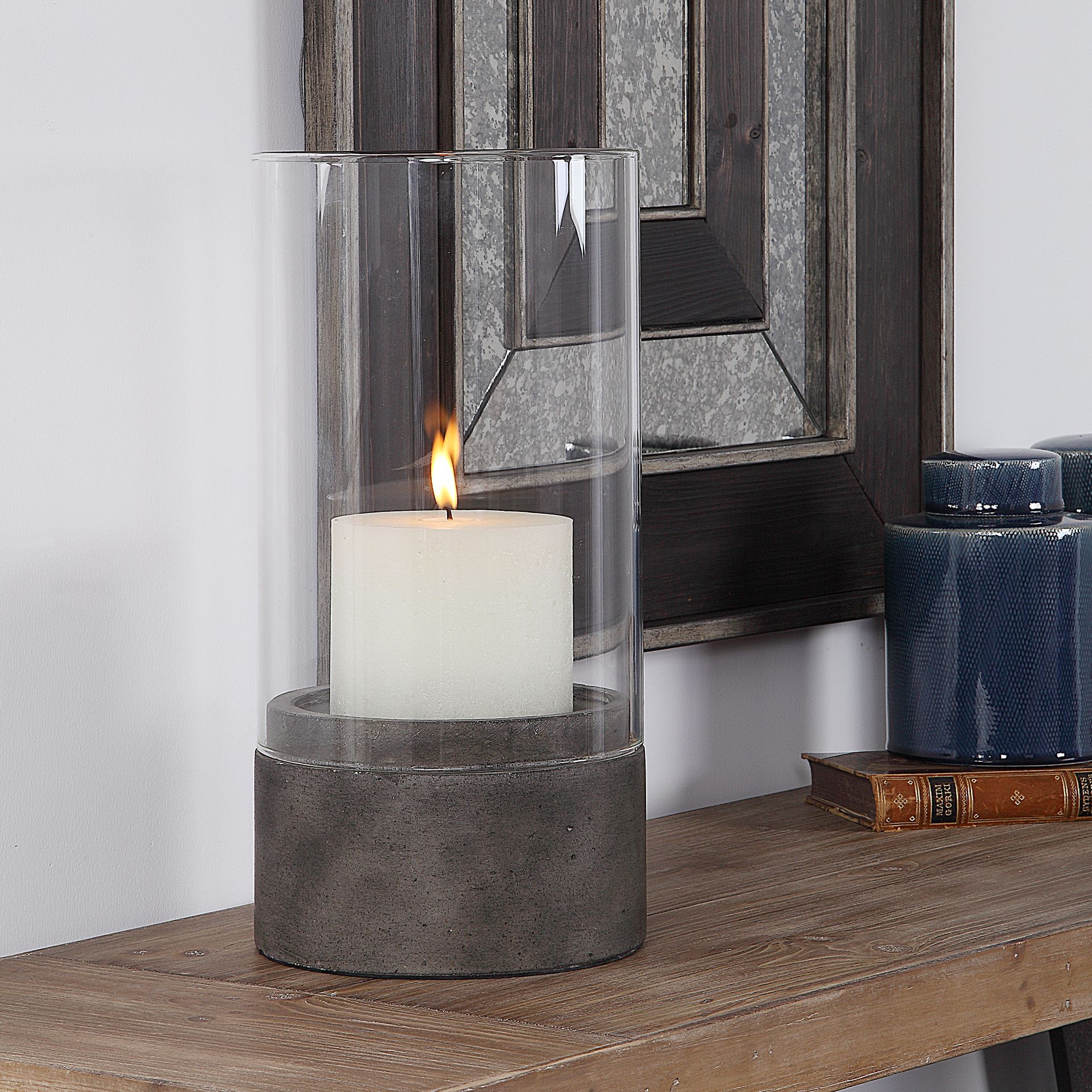 Hurricane Jar With Cement Base Home Ornaments B M