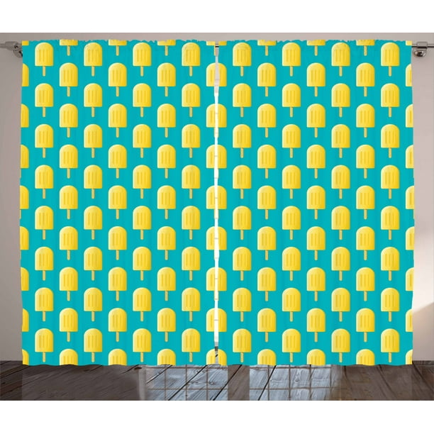 Yellow And Blue Curtains 2 Panels Set Ice Cream Pattern Popsicle