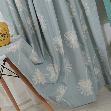 Luxury Curtains Elegant Floral Embroidery Ice Blue Chenille No