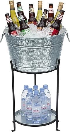 Ice Bucket With Stand And Tray Galvanized Party Tub Is Perfect