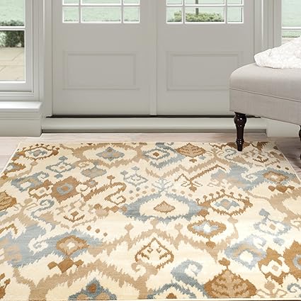 Amazon Com Home Lavish Ikat Area Rug 8 By 10 Cream Blue