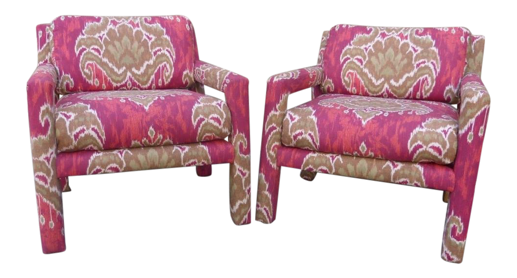 Pair Of 1970 S Parsons Chairs Covered In Ikat Fabric Chairish