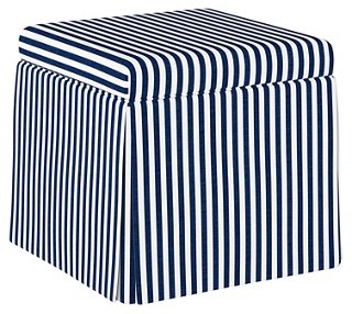 Anne Skirted Storage Ottoman Navy Stripe Linen One Kings Lane