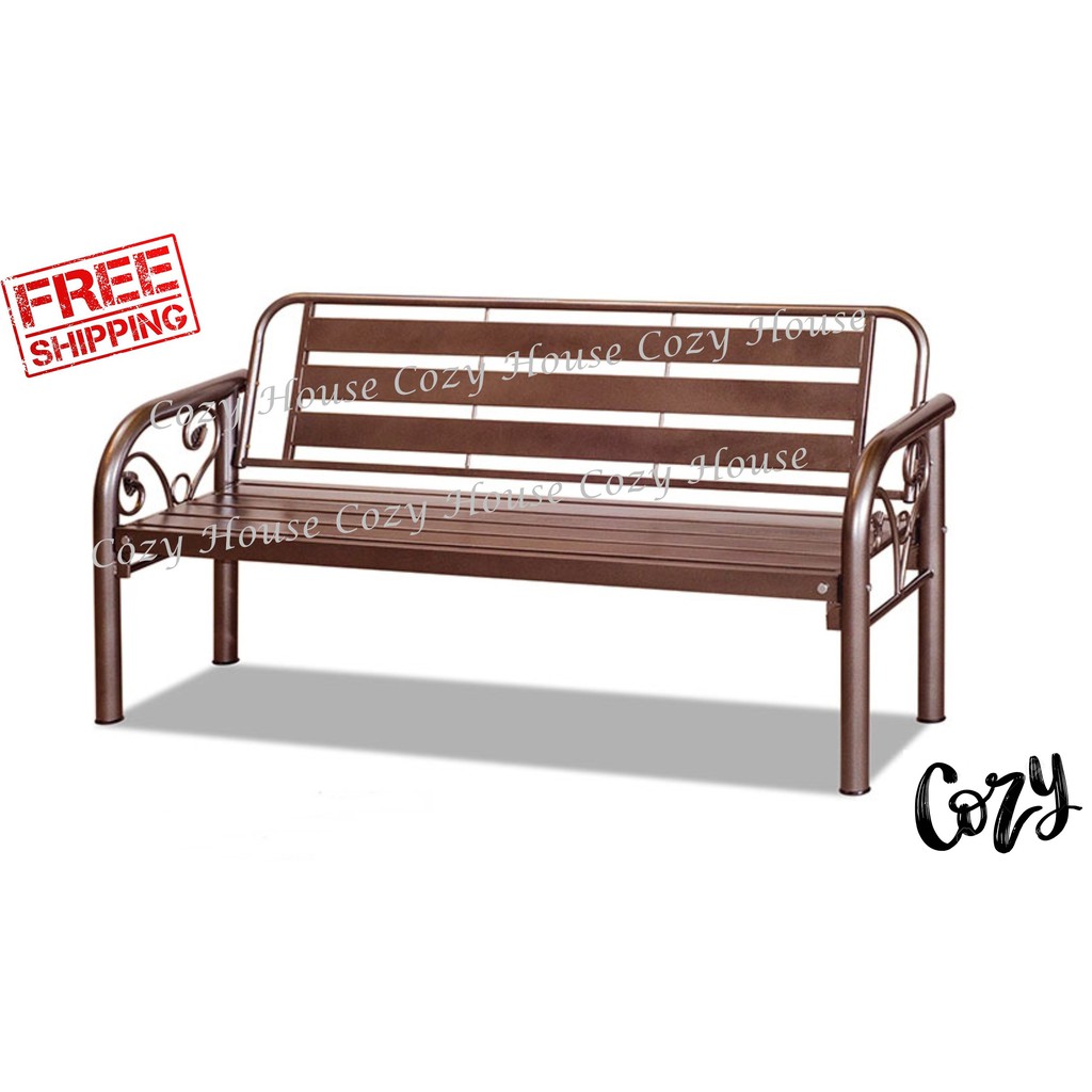 Metal 5 Long Bench Chair Indoor Outdoor Brown Colour Plain