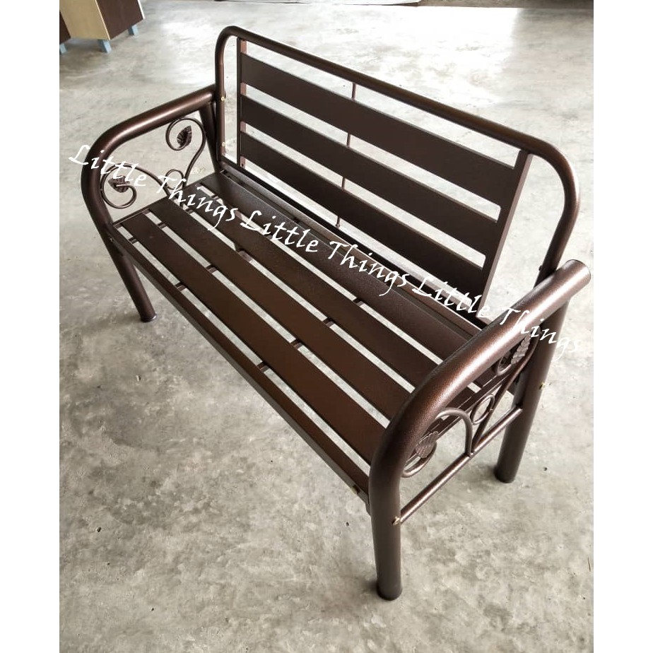 Indoor Outdoor Metal 4 Long Bench Chair Brown Colour Plain