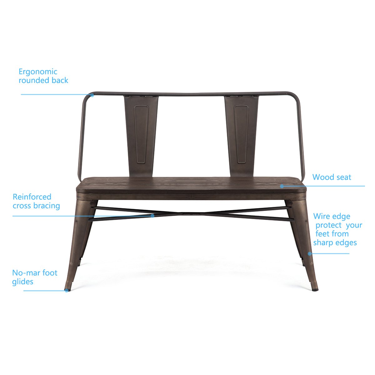 Vintage Metal Bench Steel Furniture Seating Outdoor Indoor Modern