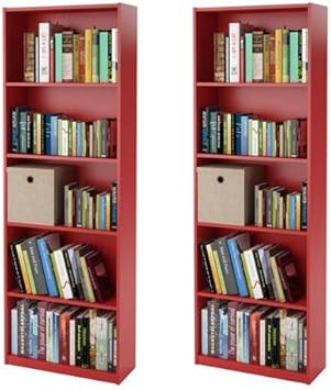 Amazon Com Ameriwood 5 Shelf Bookcases Red Set Of 2 Kitchen
