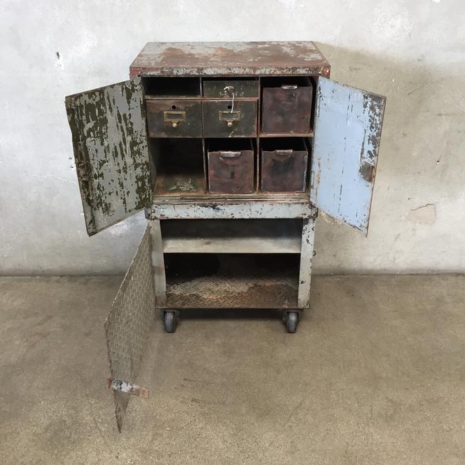 Steel Textile Machine Works Riveted Rolling Cabinet Vintage