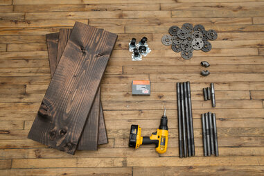 Diy industrial style wood bar cart from thrillist. I then screwed it into the end of the top tabletop in order to mount my towel bar onto it. Sometimes its as simple as applying fresh paint to some object found. These galvanized steel angles add a beautiful industrial touch.