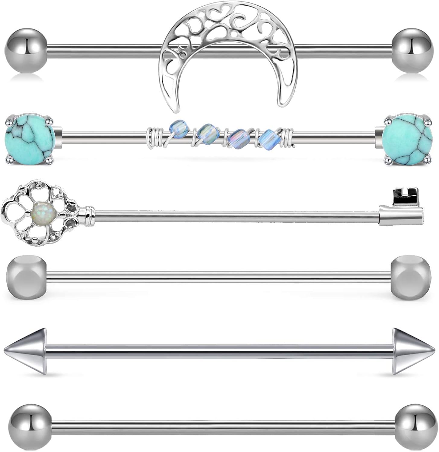 Bodyj4you 6pcs Industrial Barbell Earrings Set 14g Cartilage