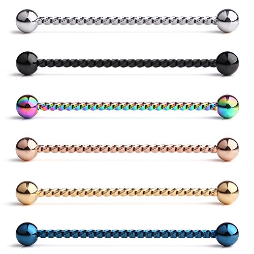 Ruifan 6pcs 14 Gauge Braided Bar Industrial Barbell Cartilage