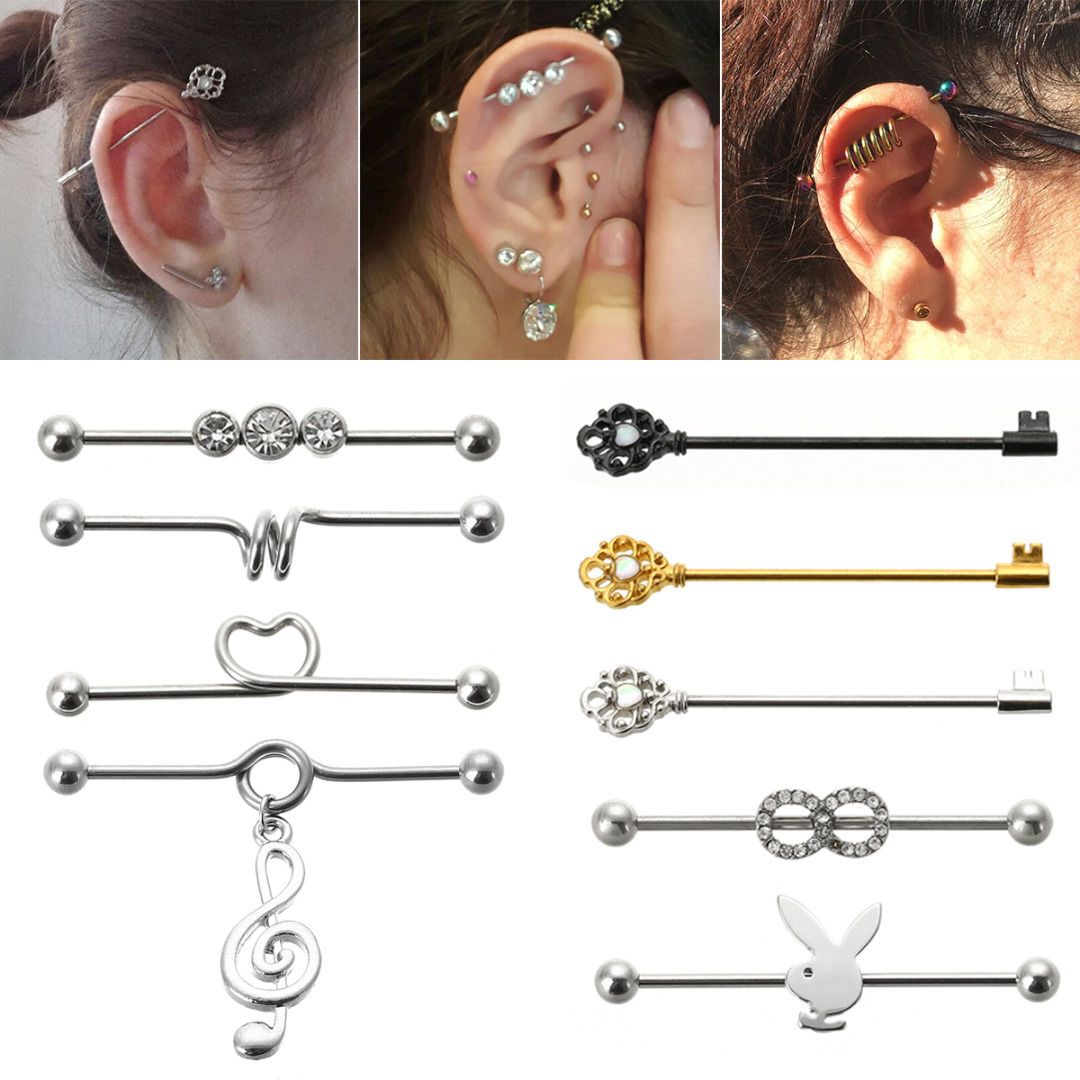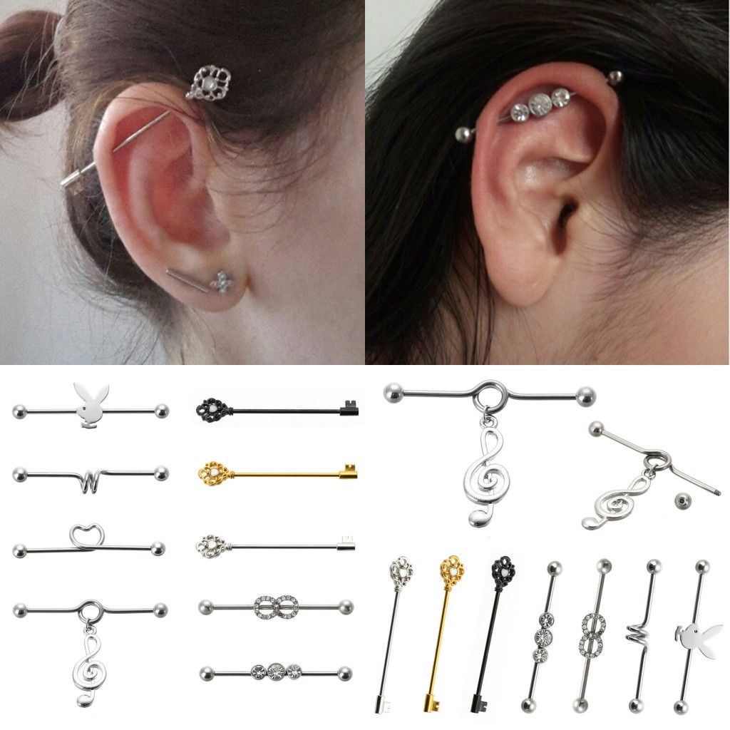 14g Industrial Barbell Earring Various Design Cartilage Piercing