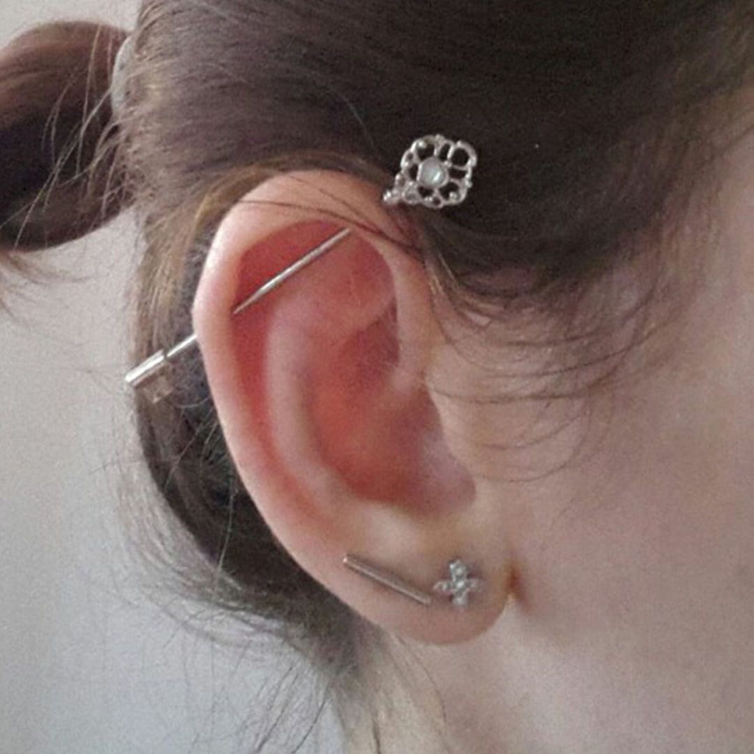 Industrial Bar Forward Helix Triple Lobe Earings Piercings