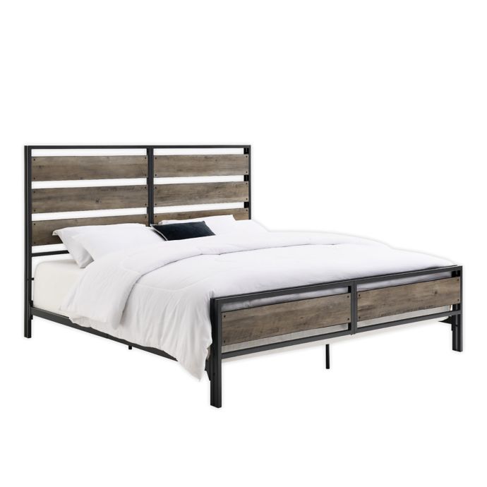 King Size Industrial Slat Bed Reclaimed Barnwood By Walker Edison