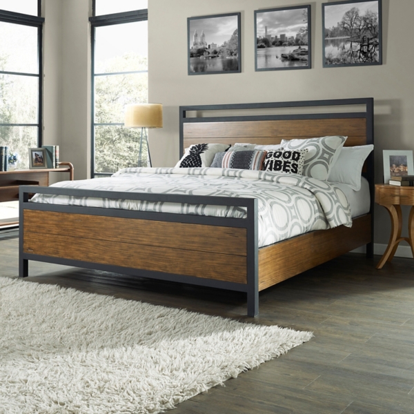 Industrial Brown Wood Queen Bed With Metal Frame Kirklands