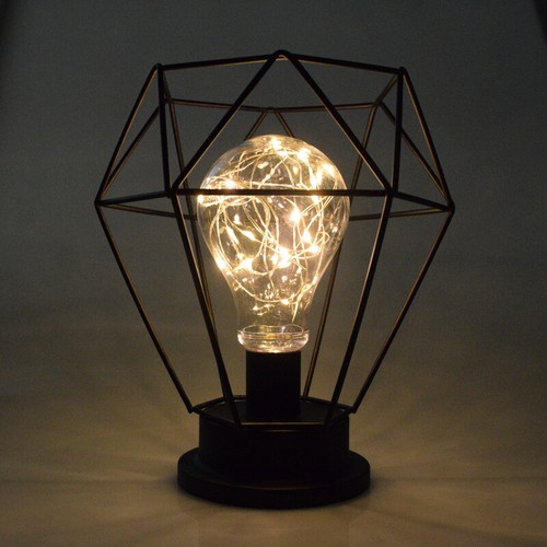 Table Lamp Bedside Retro Black Geometric Wire Industrial Led Light