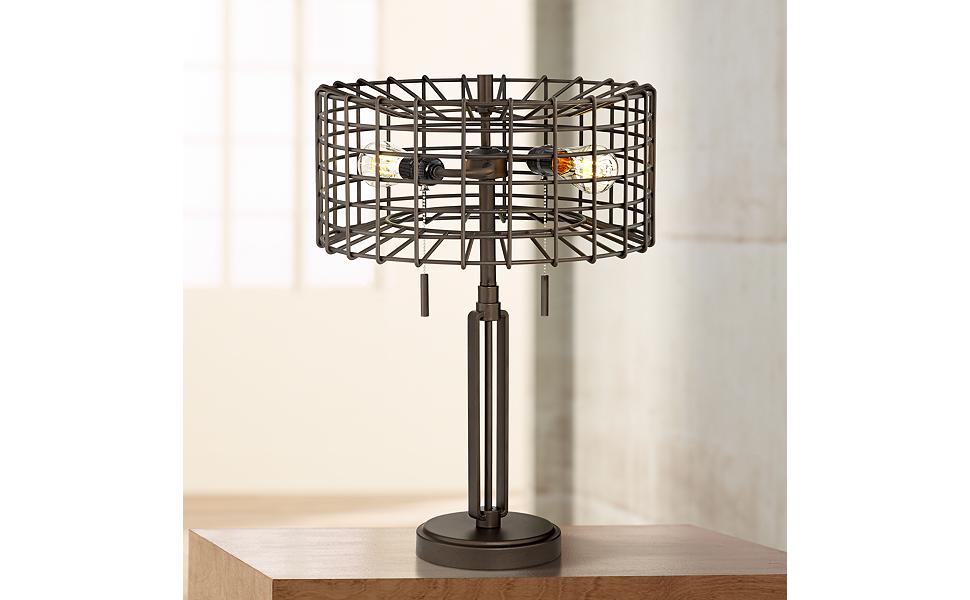 Modern Industrial Desk Table Lamp 17 1 4 High Bronze Wire Cage