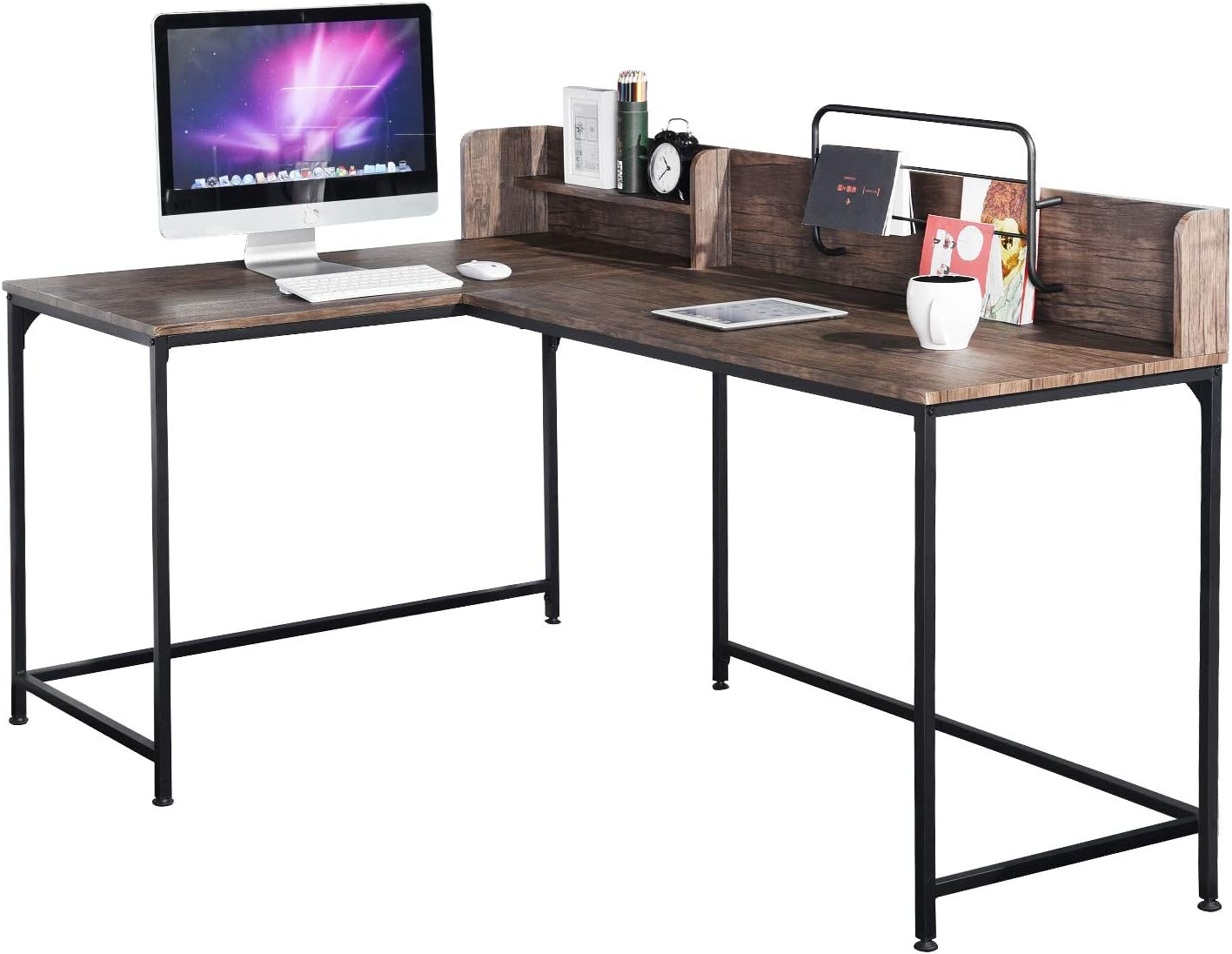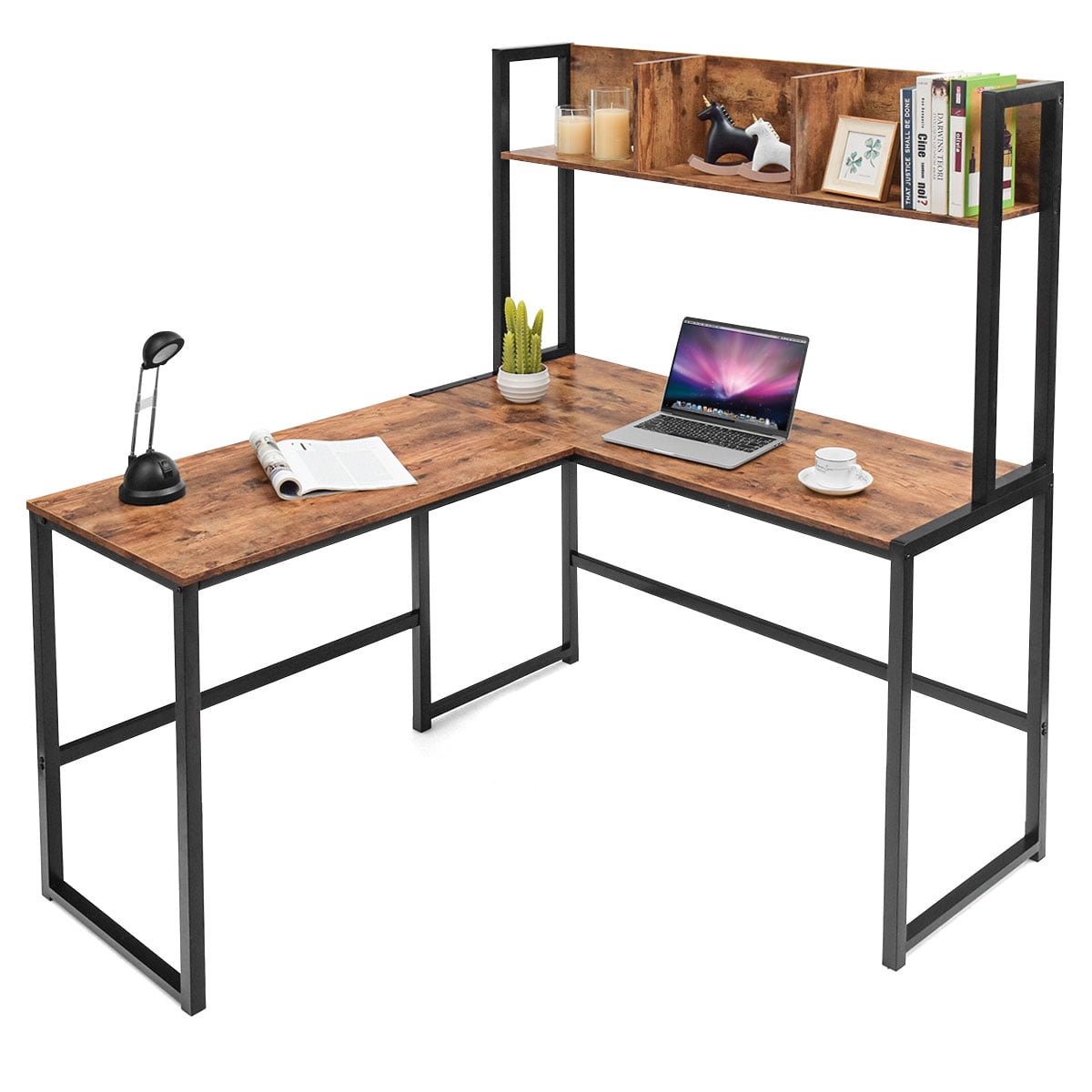 Costway Industrial L Shaped Desk W Hutch Bookshelf 55 Corner