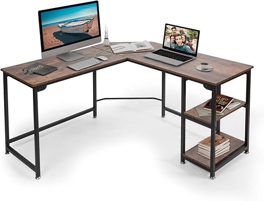 Industrial L Shaped Desk Bookshelf 55 Corner Computer Gaming
