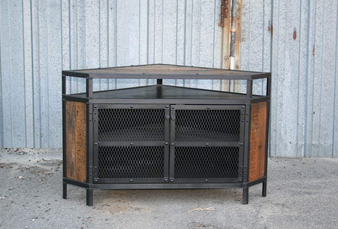 Hand Made Media Unit Corner Console Tv Stand Steel Reclaimed