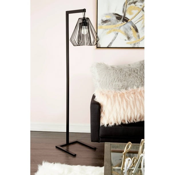 Shop Industrial Black Metal Floor Lamp With Diamond Shaped Wire