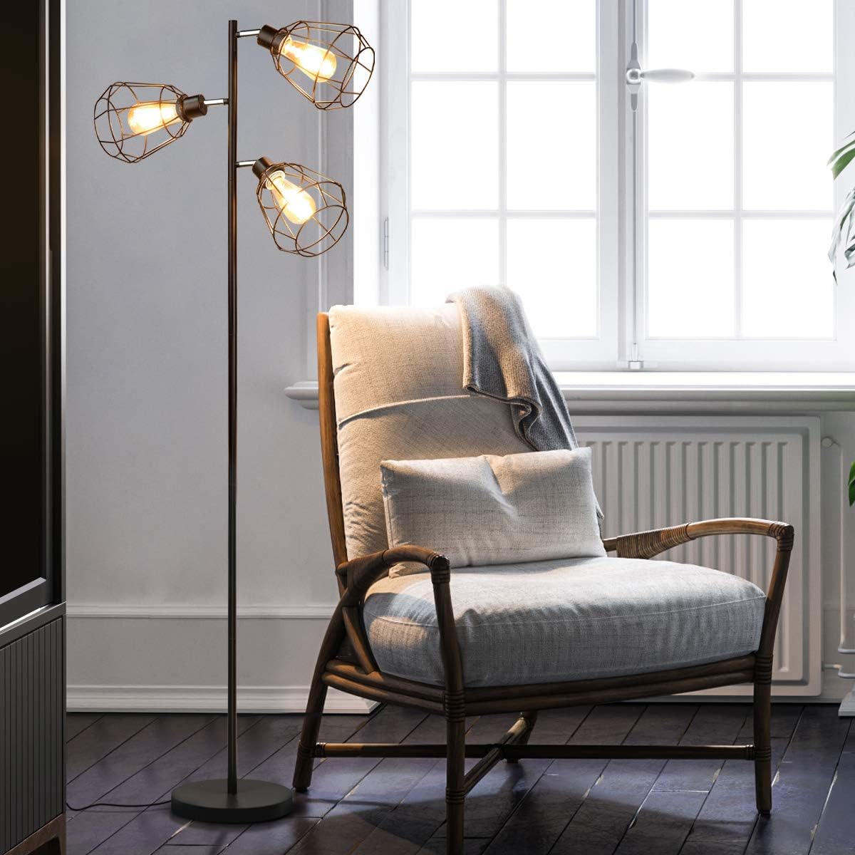 Modern Industrial Floor Lamp Rustic Metal Cage Dimmable 3 Light