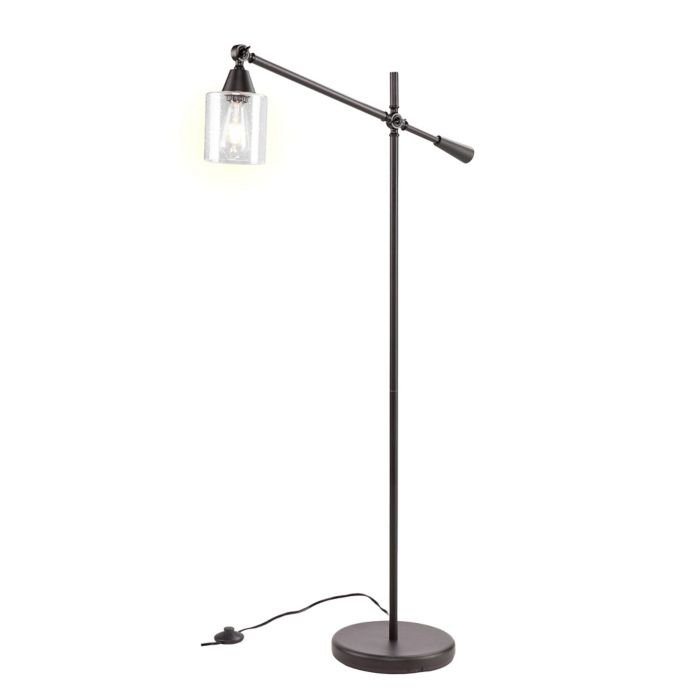 Malta Metal Glass Industrial Reading Floor Lamp With Seeded Glass