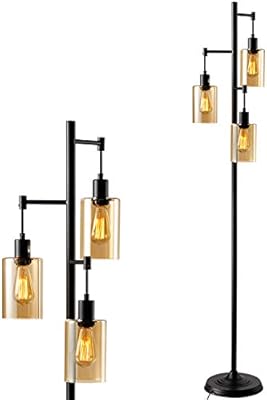 Leonlite Industrial Floor Lamp Hanging Amber Glass Shade 3 Head