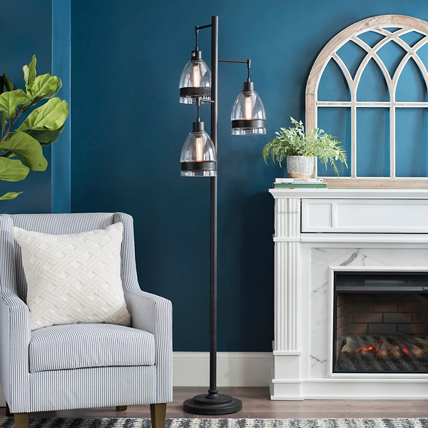 Glass Shade Tri Black Floor Lamp With Metal Detail Kirklands