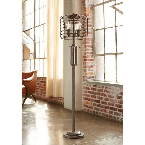 Industrial Floor Lamp Rustic Bronze Open Metal Cage 3 Light