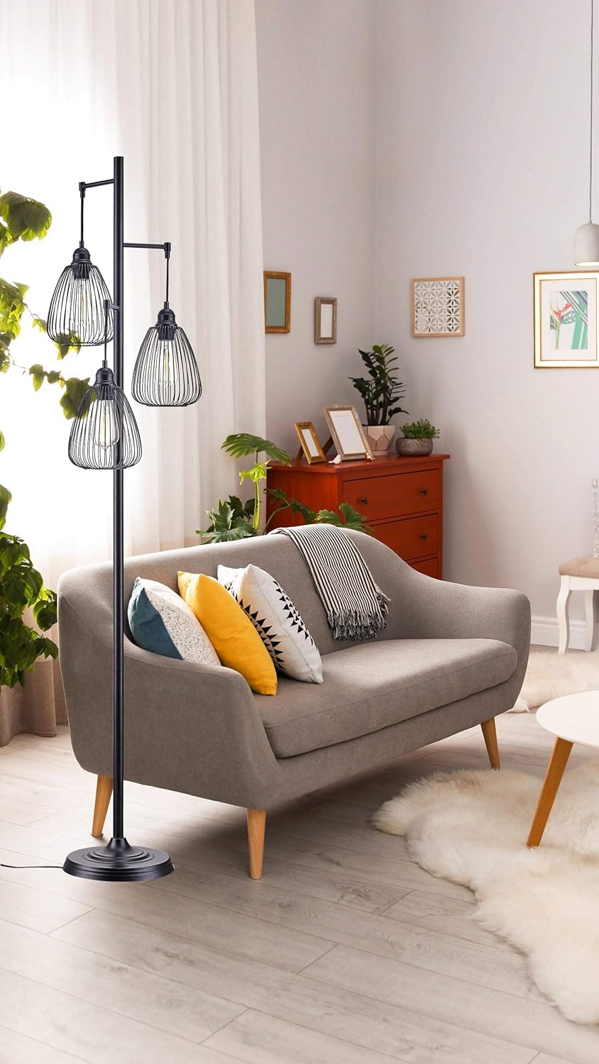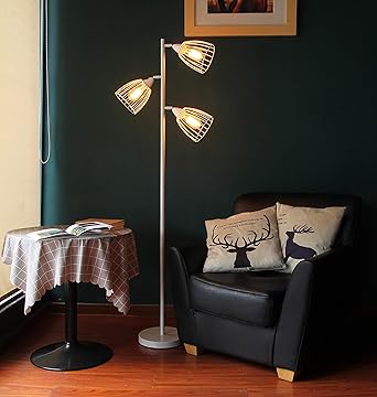 Modern Industrial Floor Lamp Rustic Metal Cage Dimmable 3 Light