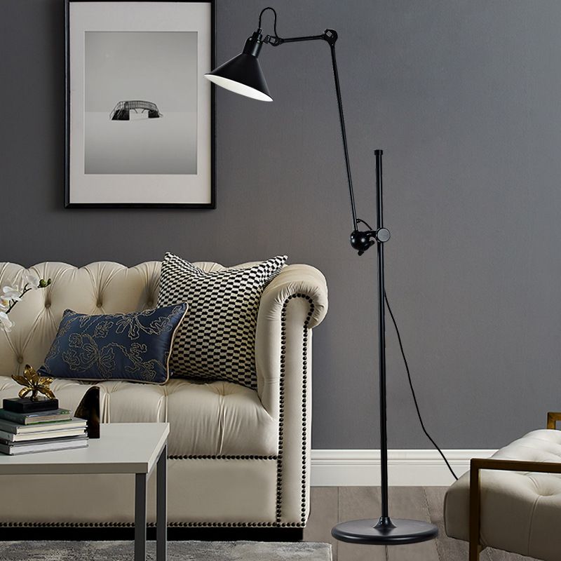 Modern Industrial Floor Lamp Black Silver Swing Long Arm