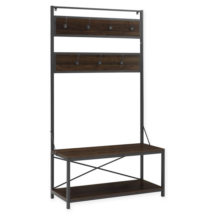72 Modern Industrial Hall Tree With Storage Shelving Dark Walnut