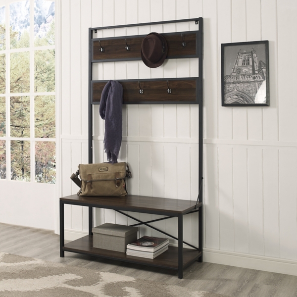Industrial Metal And Dark Walnut Hall Tree Kirklands