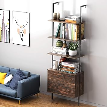 Ballucci Industrial Bookshelf 4 Tier Ladder Shelf With Metal
